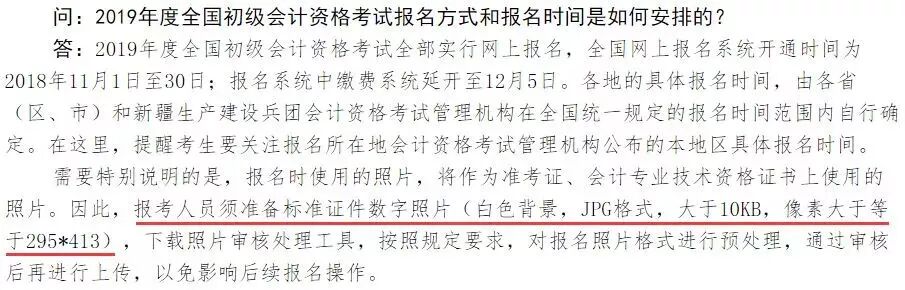 财政部文件已经明确公布了2019初级报名照片要求:
