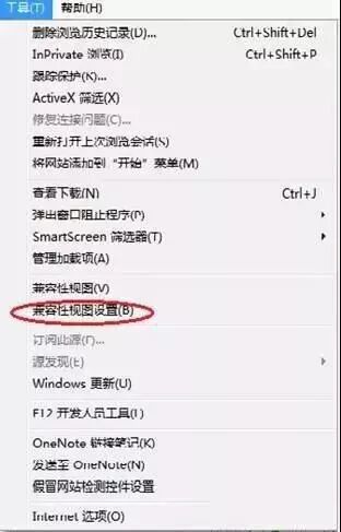 如果您使用IE10或IE11,请先把本系统域名加入兼容视图,点击菜单栏的工具/兼容性视图设置,如下图: