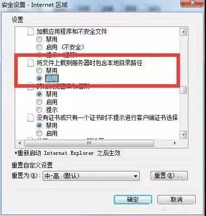 ②将“二进制和脚本行为”和“将文件上载到服务器时包含本地目录路径”选择“启用”。